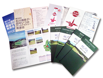 大判ポスターなどの掲示物、名刺、封筒、パンフレットなどの印刷物のデザイン制作、印刷まで対応いたします。