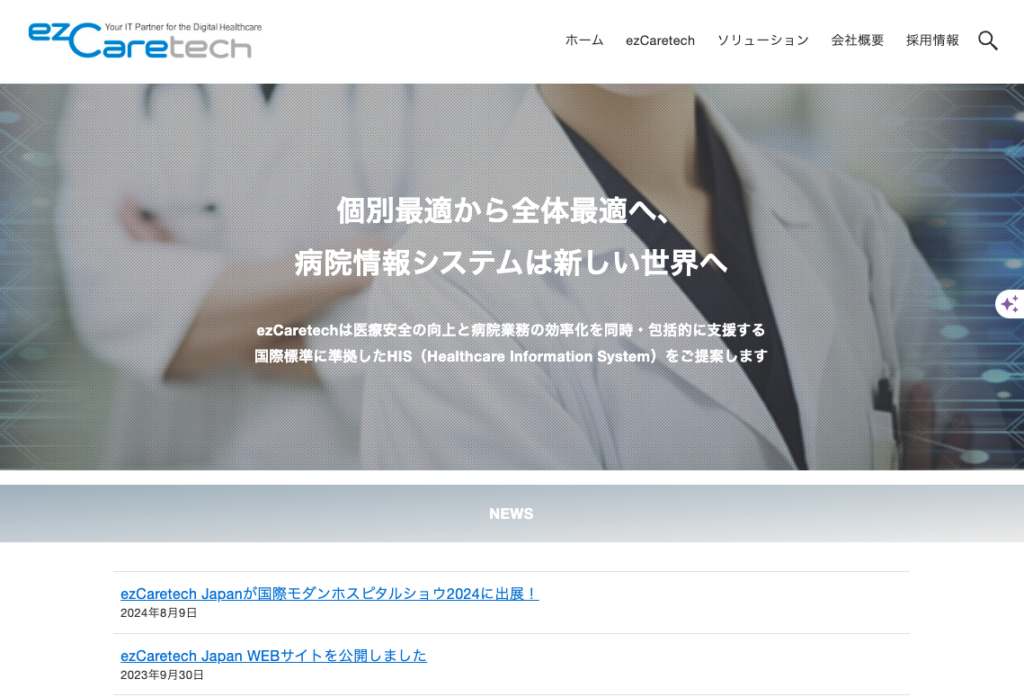 国際的に事業展開する病院情報システムベンダーの日本法人コーポレートサイト制作。WordPressをベースに制作。