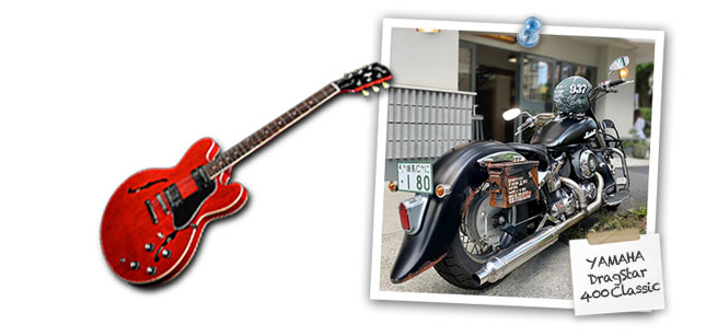 趣味はギター(Gibson ES-335、Martin OOO-28、Ovation Elite1856Tなどをはじめ10本所有、日々練習中)と、映画鑑賞(というより映画オタク)かなりマニアックな話も大好物。映画のエキストラ、和太鼓演奏など他にも色々と引き出しがあります。